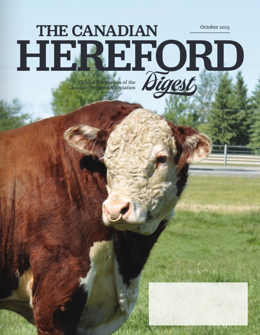 The Canadian Hereford Digest is the official publication of the Canadian Hereford Association. It is published four times per year in January, March, August and October. Your membership in the CHA includes all four issues at no additional charge.